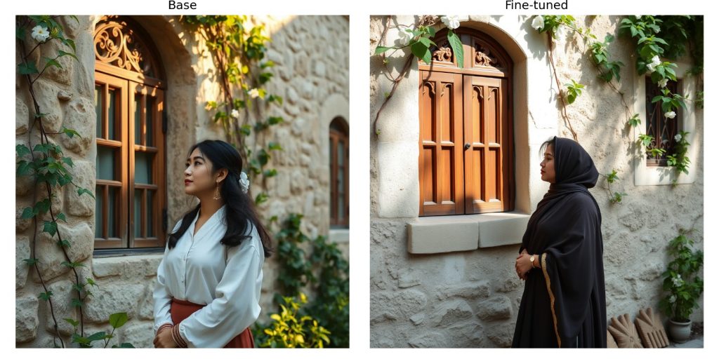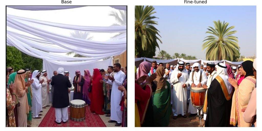 The solution? Fine-tuning. By adapting pretrained models to domain-specific data, we unlock personalization, improve prompt alignment, and inject cultural or stylistic nuance. For example, we can fine tune a model to learn the cultural nuances and face features aligned with our Arab region, to deliver image generation that feels more natural.